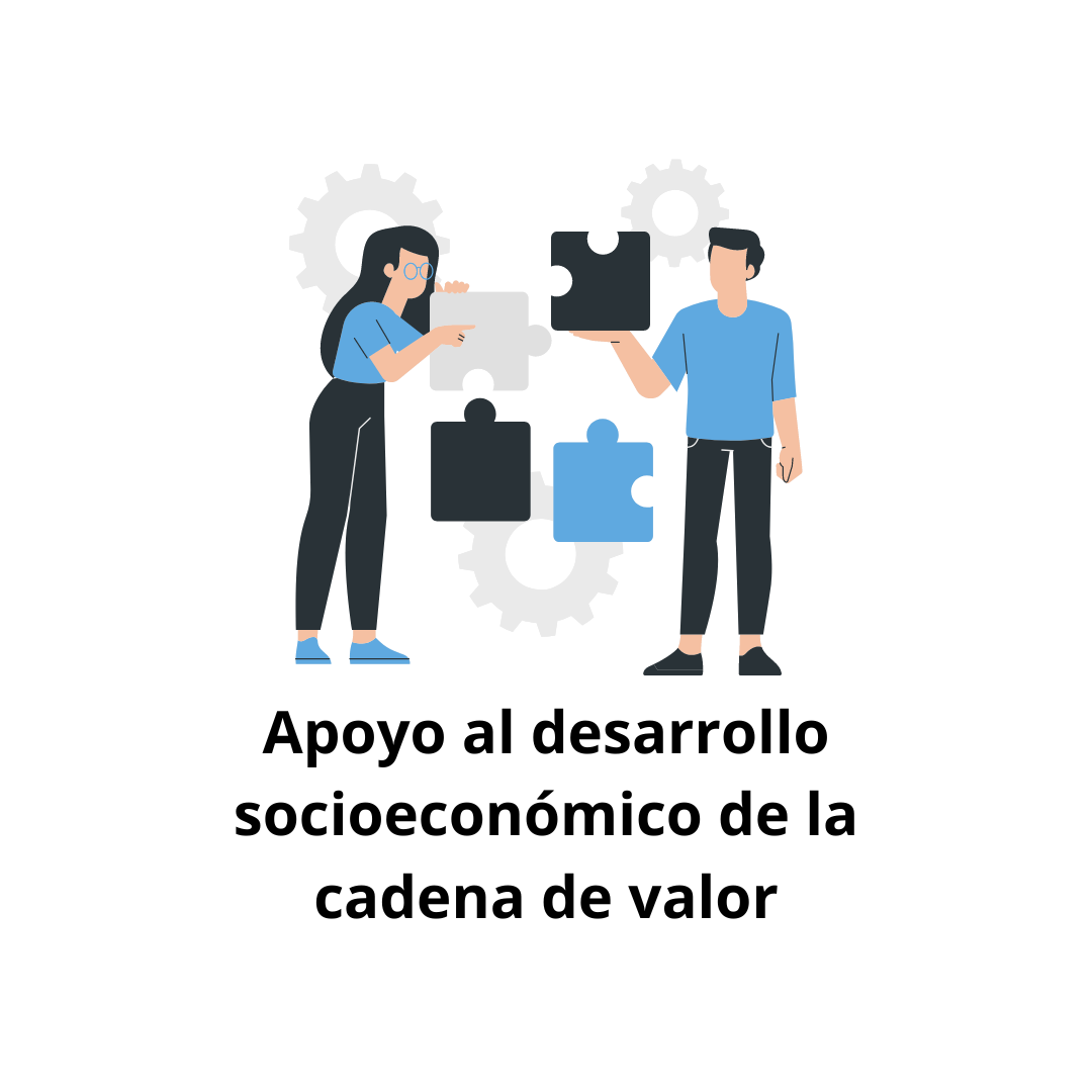 • Insumos: estos actores desempeñan un papel fundamental al proveer los materiales necesarios para el funcionamiento de la cadena. Entre ellos se encuentran proveedores de alimento balanceado, empaques, aditivos, hielo, equipos y otros recursos.